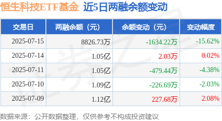 本站消息,7月15日,恒生科技ETF基金(513260)融资买入5900.21万元,融资偿还7534.42万元,融资净卖出1634.22万元,融资余额8826.73万元,近20个交易日中有11个交易日出现融资净买入。